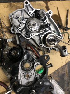 このエンジンはクランクシャフトの外側からオイルシールが抜けないので……オイルシールの交換にはエンジンを降ろして全バラしなければいけません。工賃もそれなりにかかってしまいます。