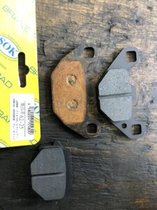 125EFIのパッドが見つからず、なんとか国産車の同様の形のもので代用できました。(バリオス、エストレア用)