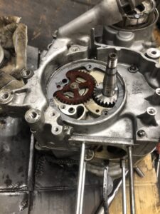 オイルポンプのギアを外さないとベアリングが抜けません。