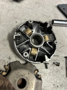 ウェイトローラーも程度良好です。寿命を延ばすためローラーの位置を一か所ずつずらしておきました。(この車種はローラー3個です)